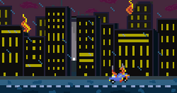 It's a fun little game and the art is nice but it could have more going on like sound and variety in the falling items. It could also have more consistent pixel size in relation to the characters and the background.